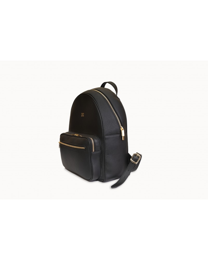 Fabricada en piel auténtica de textura suave, incorpora dos bolsillos exteriores con cremallera dorada, un amplio compartimento principal con forro interior y asas ajustables que garantizan comodidad durante todo el día.