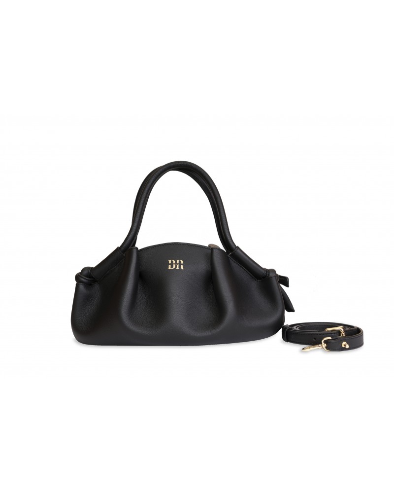 El bolso modelo M de la colección Esencia de Brizapiel es una pieza única que combina vanguardia y elegancia con un marcado carácter artesanal. Su diseño curvado y fruncido, elaborado en piel negra de grano fino, lo convierte en un accesorio sofisticado y moderno, ideal para elevar cualquier look.